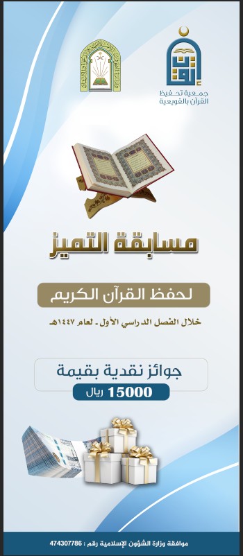 بحمد الله وتوفيقه تمّ توزيع جوائز مسابقة التّميّز على الفائزين بها خلال الفصل الدّراسي الأوّل وعددهم ١١٩ طالبًا وقام فضيلة الشيخ / محمد بن عبدالرحمن الهويمل ورئيس الجمعية الشيخ / إبراهيم بن سعود الشقي