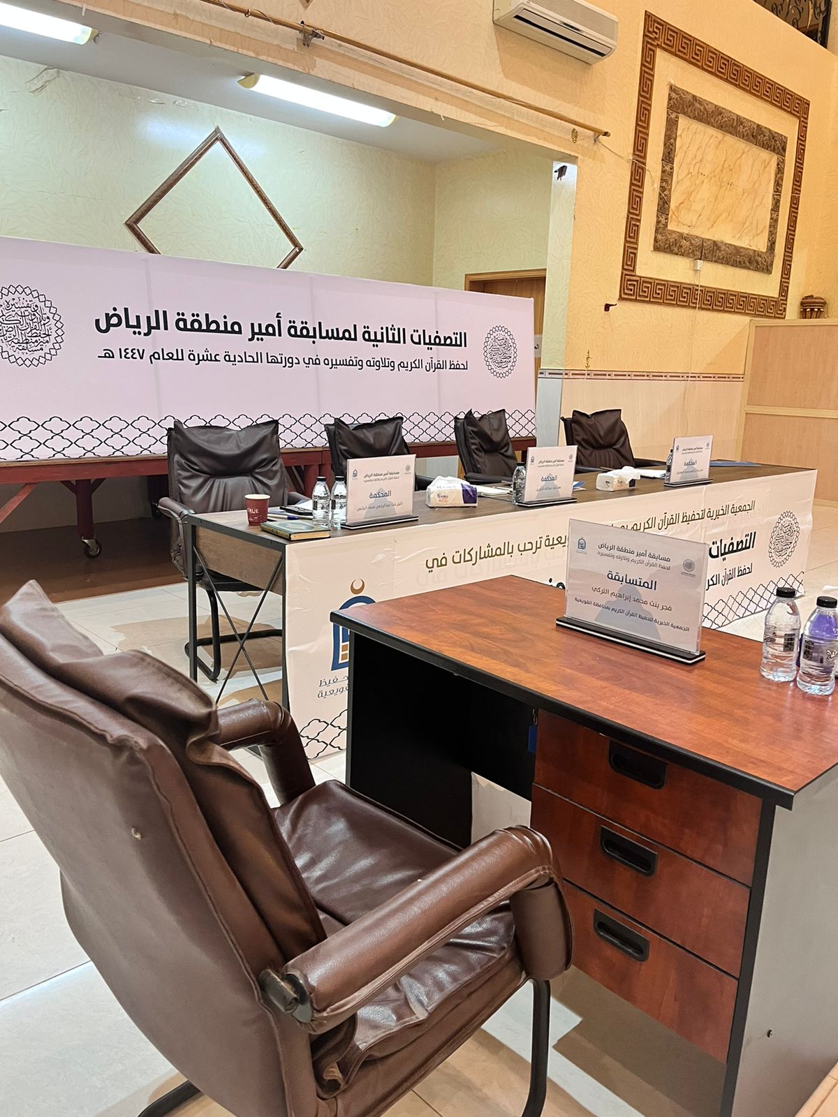 انطلقت صباح يوم السبت 19 /8 /1447 هـ التصفيات الثانية لمسابقة أمير منطقة الرياض لحفظ القرآن الكريم وتلاوته وتفسيره للبنات والتي تستضيفها جمعية تحفيظ القرآن الكريم (إتقان) بمحافظة القويعية ،تأكيدًا على ماتوليه قيادتنا الرشيدة أيدها الله من اهتمام بالغ بكتاب الله ودعمٍ مستمر لمسيرة حفظه وتعليمه.»
